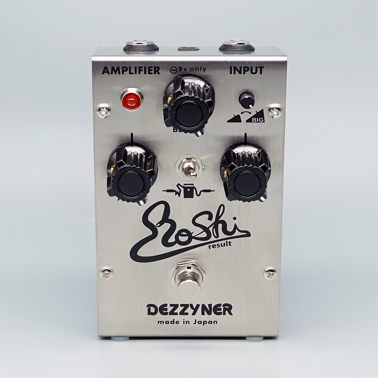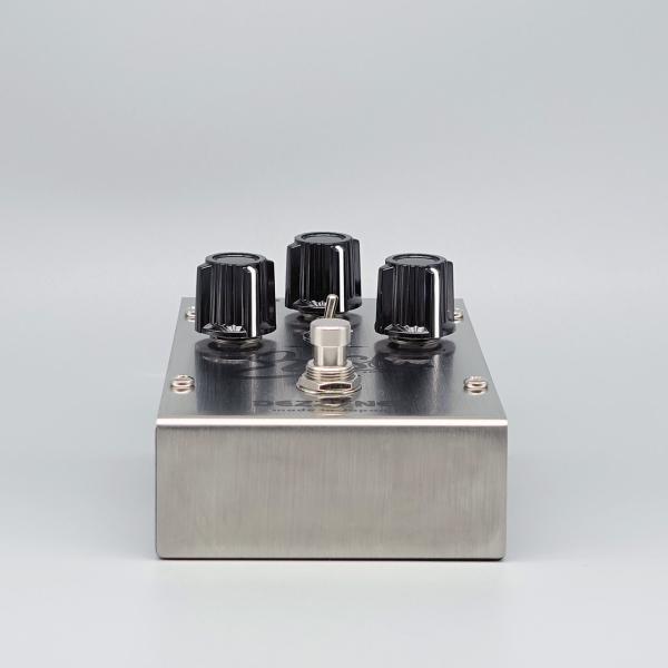 DIZZY TONEは、すべてのコントロールが連動して動くことで多彩なサウンドメイクが可能です。しかし音色と音量のバランスがとりずらいことが難点だと感じます。例えば、TONEに近い動作をする「BLANCE」を絞るとローカットされた素晴らしいサウンドになりますが同時に音量も下がり、十分な音量を出すことができなくなります。DEZZYNER resultは、DIZZY TONEの持つサウンドの魅力を余すところなく表現できるようにアウトブースターを採用しました。これによりコントロールがどの位置であっても実用的な音量を得ることが可能です。