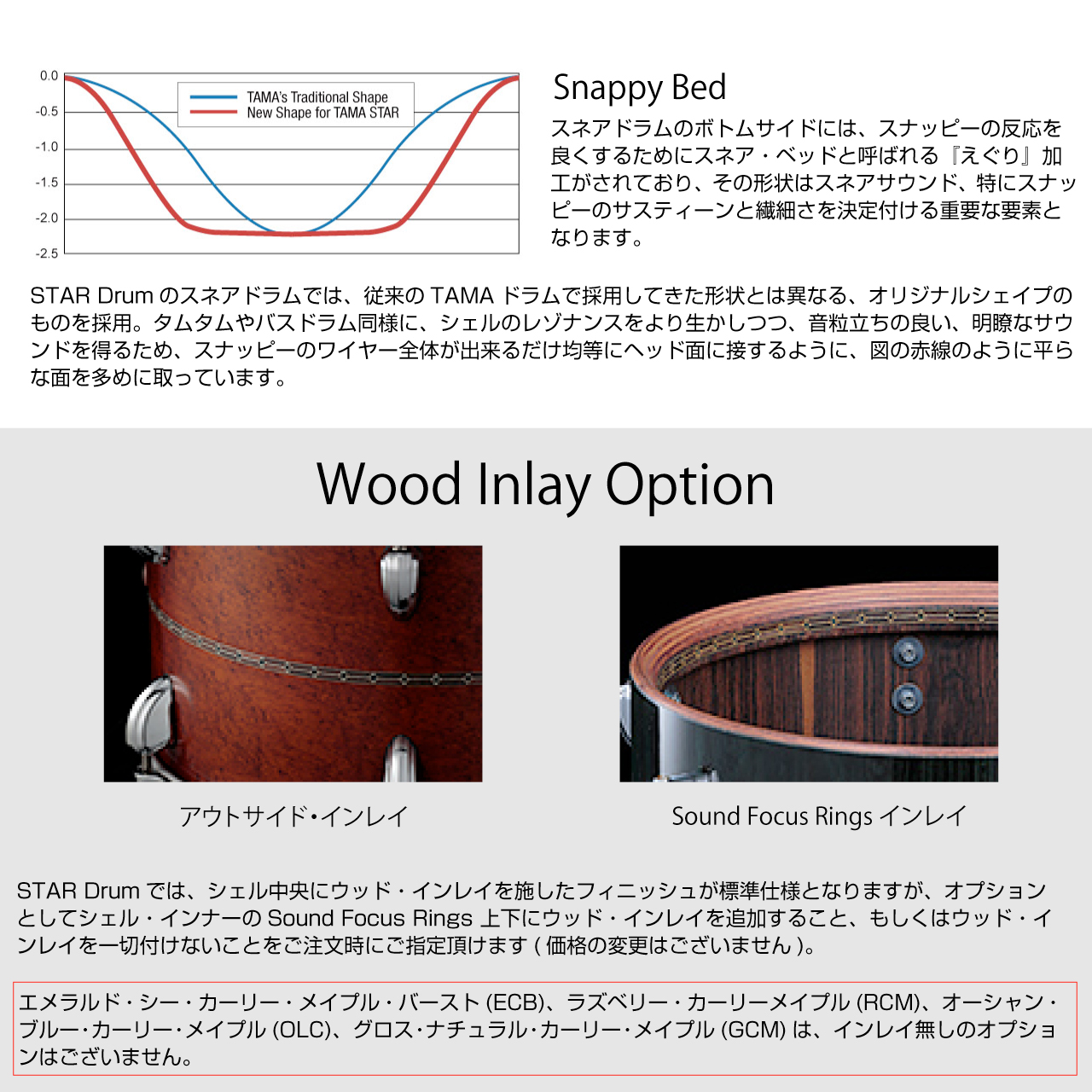 STARのスネアドラムでは、シェル構成に”ソリッド・コア・プライ”と名付けられたオリジナルアイデアを取り入れることで、ソリッドプライ(単板)シェルとプライウッドシェルの特長を融合させることに成功。