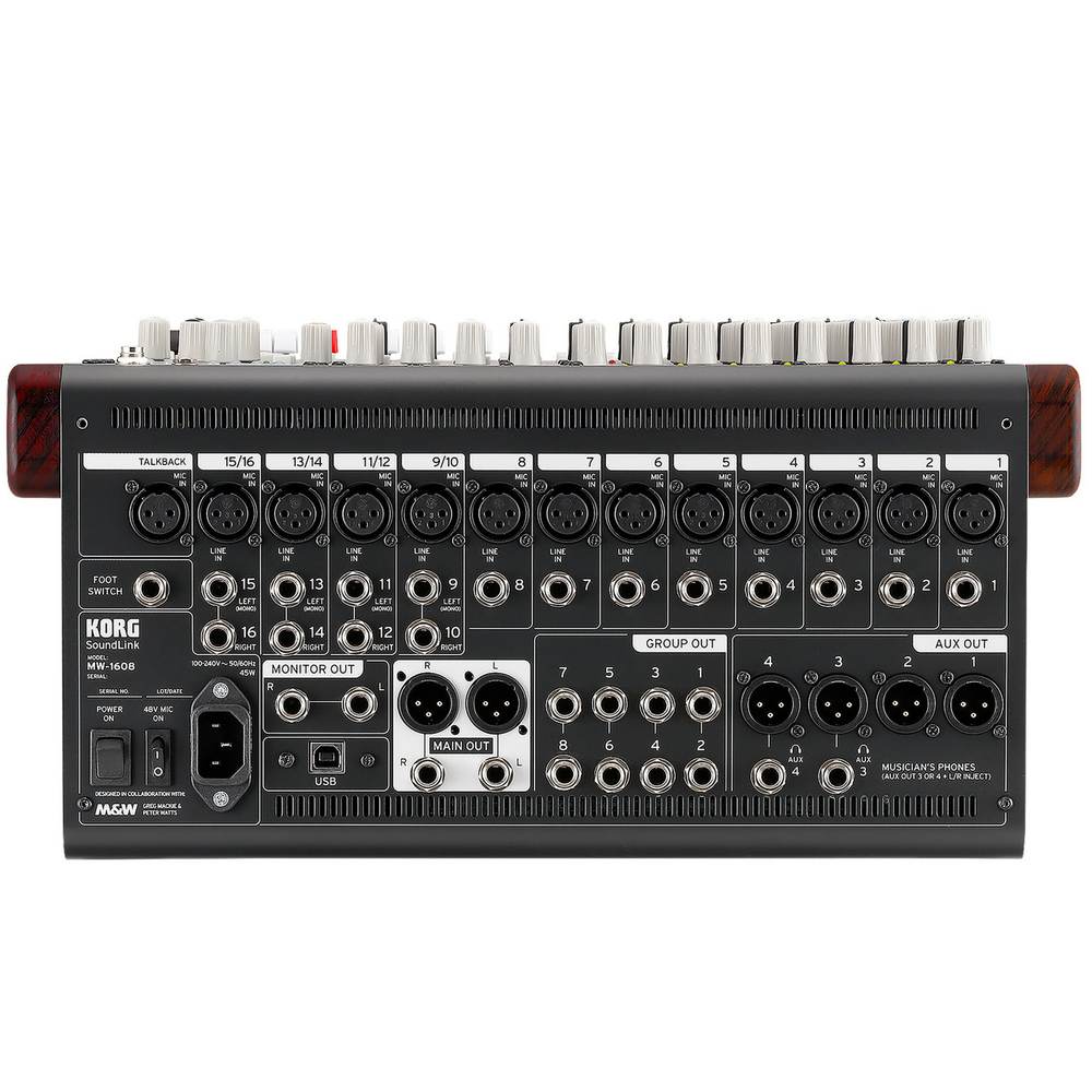 KORG コルグ MW-1608 ◆ ハイブリッド/アナログミニコンソール ウッドパネル 16chミキサー開発のレジェンド、Greg MackieとPeter Wattsによるアナログ/デジタルのハイブリッドデザイン