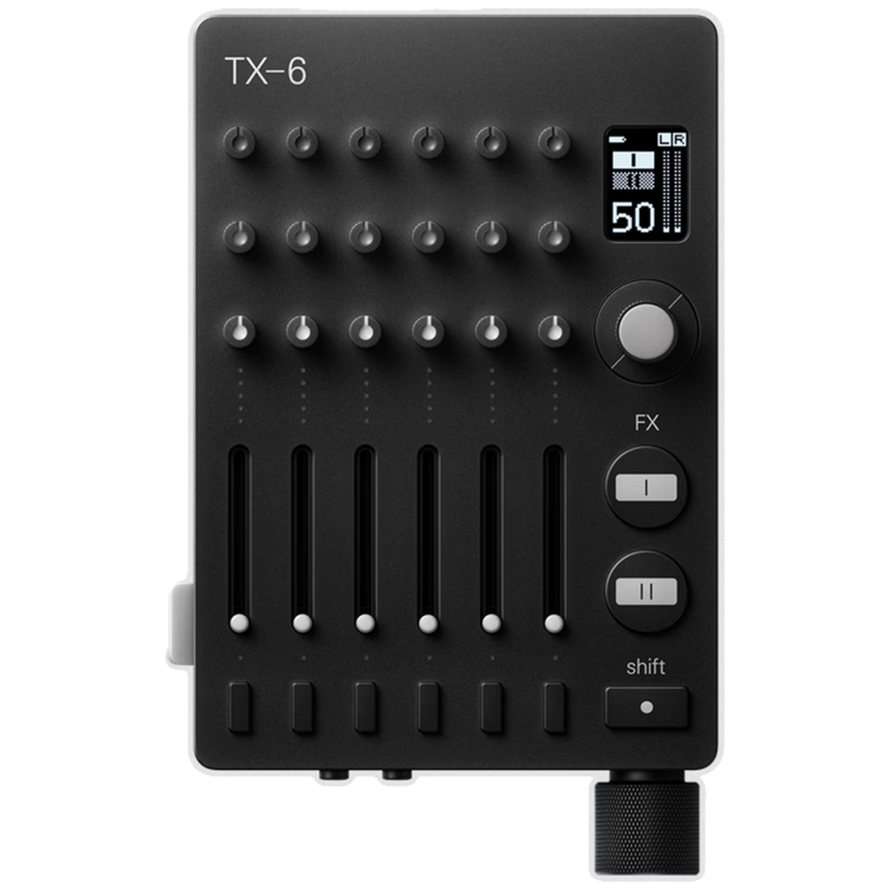 TX-6は耐久性の高いアルミニウムに包まれ、カスタムメイドのエンコーダーとフェーダーを搭載しています。充電式バッテリーにより、TX-6は自宅からスタジオまで、どこにでも持ち運ぶことができます。