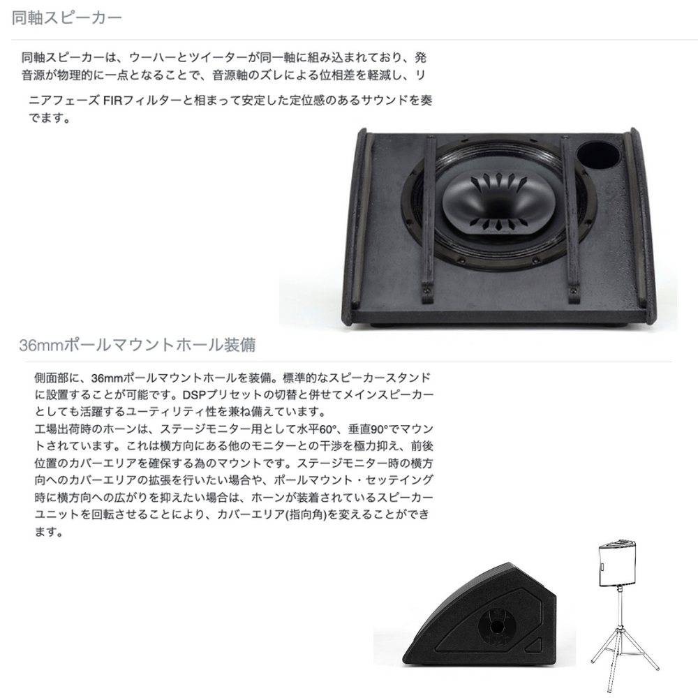 ・Class-Dアンプを内蔵した同軸スピーカーのステージモニター