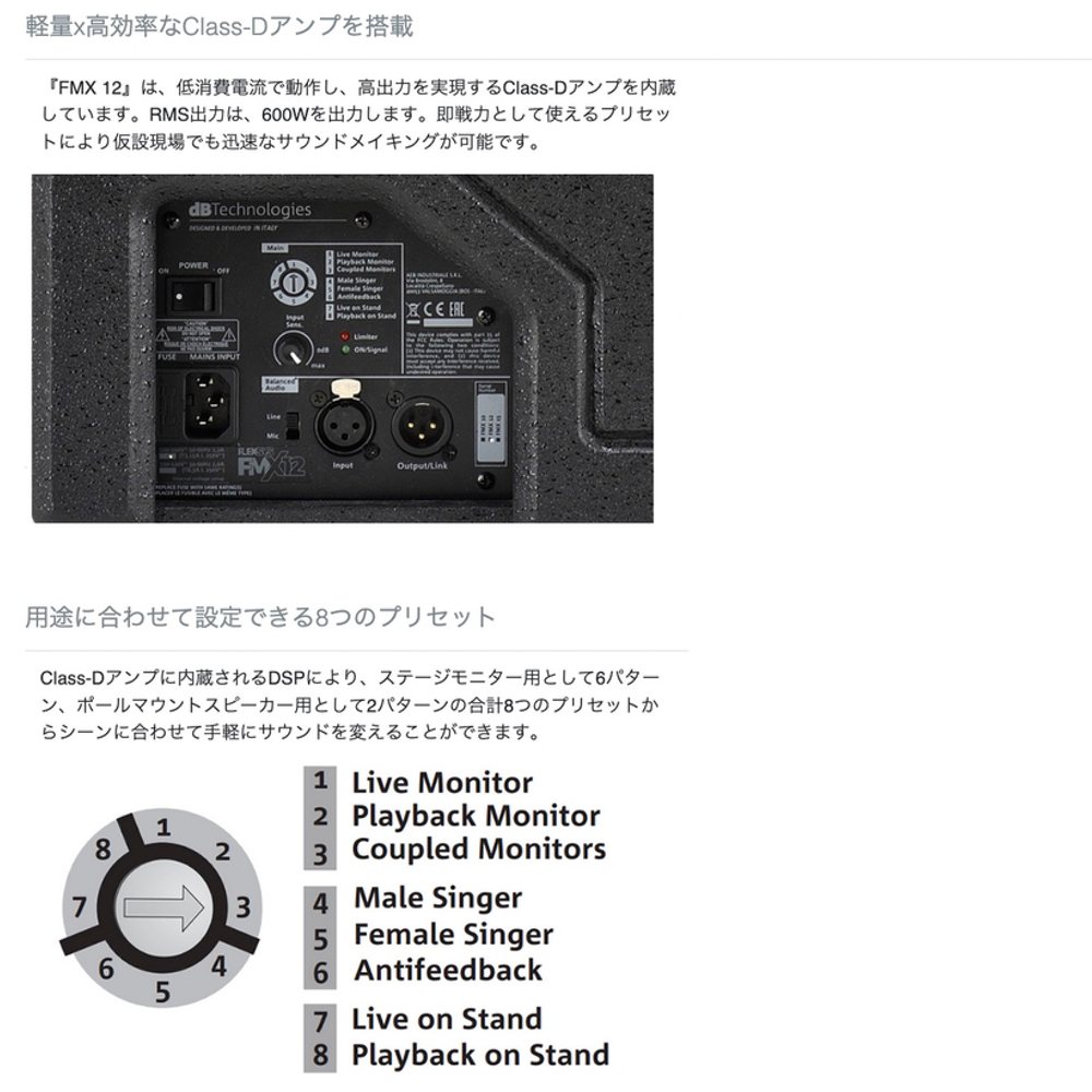 dBTechnologies ディービーテクノロジーズ FMX12 (1台) ◆ 2-Wayアクティブ コアキシャル ステージモニター濁りの無い音という特長を持つステージモニター