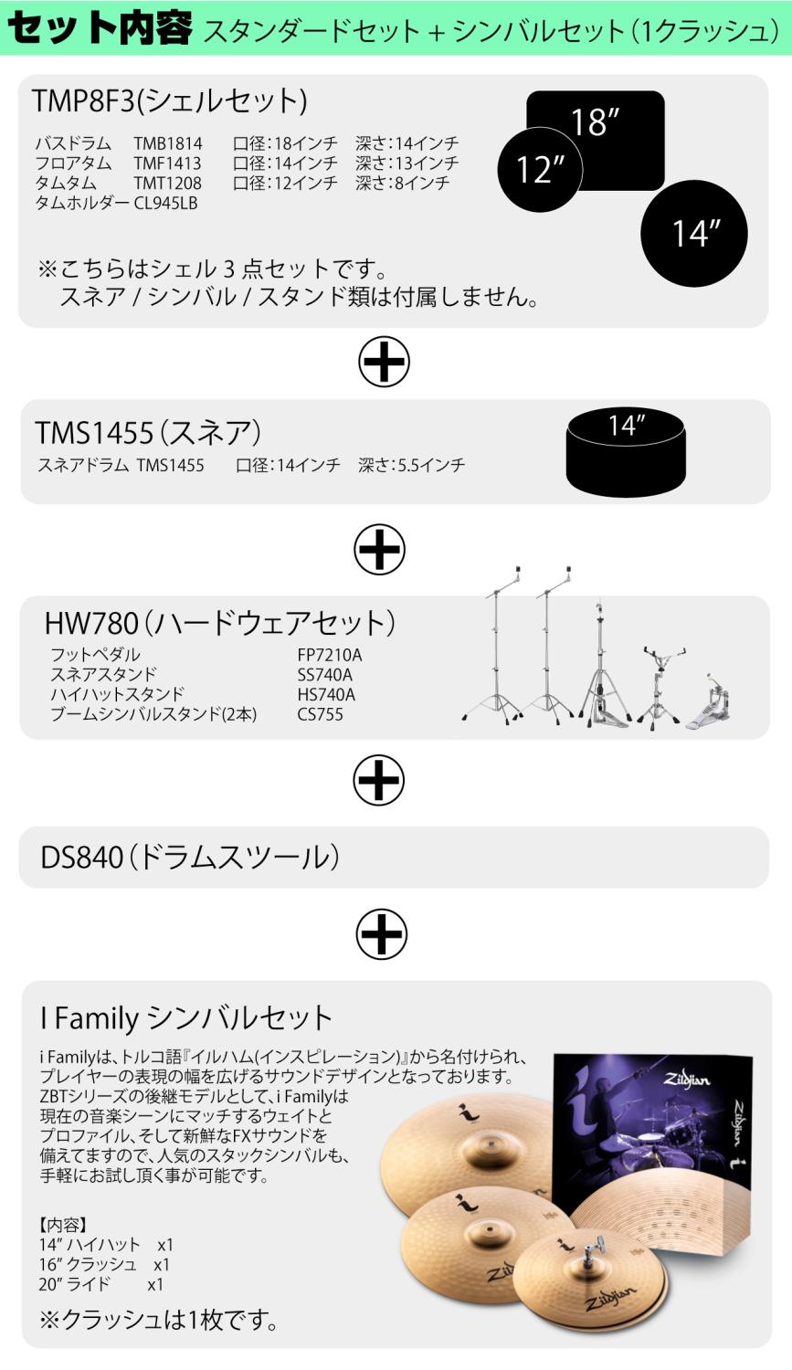 トッププロの要求に応える高い演奏性と音質を兼ね備えたドラムセット!18インチバスドラムのコンパクトキット!