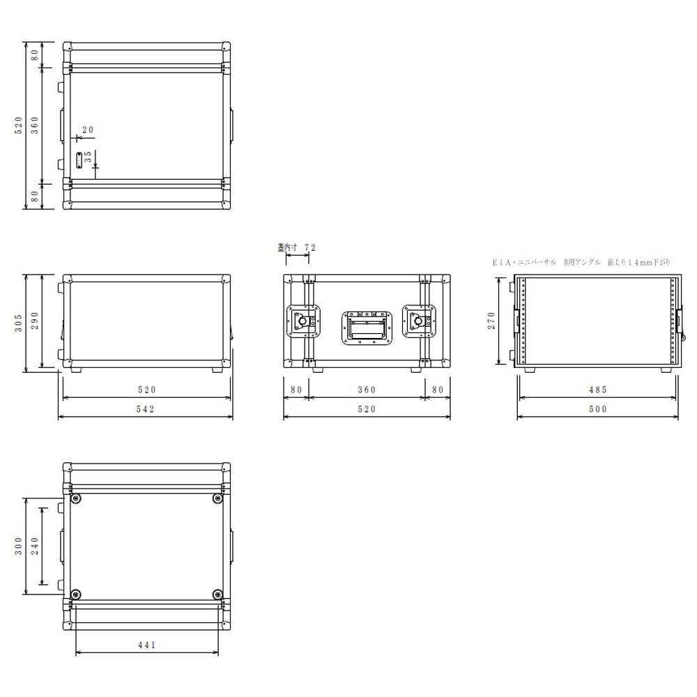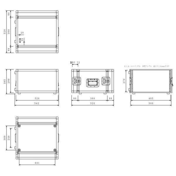 RACK CASE SD6U (D360) 01ブラック 黒 重量 約8.5kg(標準サイズ時) 奥行360mm FRP素材 ■付属パーツ ハンドル:121×2個、キャッチロック:779×4個、コーナー:851×8個、ゴム足:K3215×8個