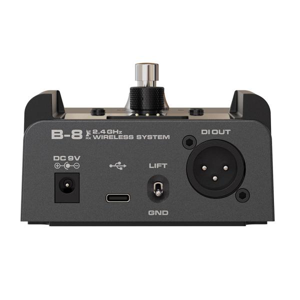 NUX B-8は、自動セットアップ、2.4 GHzの周波数帯域、24-bit/48 kHzの高音質伝送を備えたワイヤレスシステムです。信号の送信レイテンシーは2.5 msと低く、最高のパフォーマンスを発揮します。動作範囲は最大50 mです。
