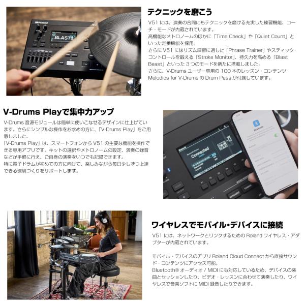 拡張性の高い音源モジュールV51を採用した、V-Drums 5シリーズの5ピース・キット