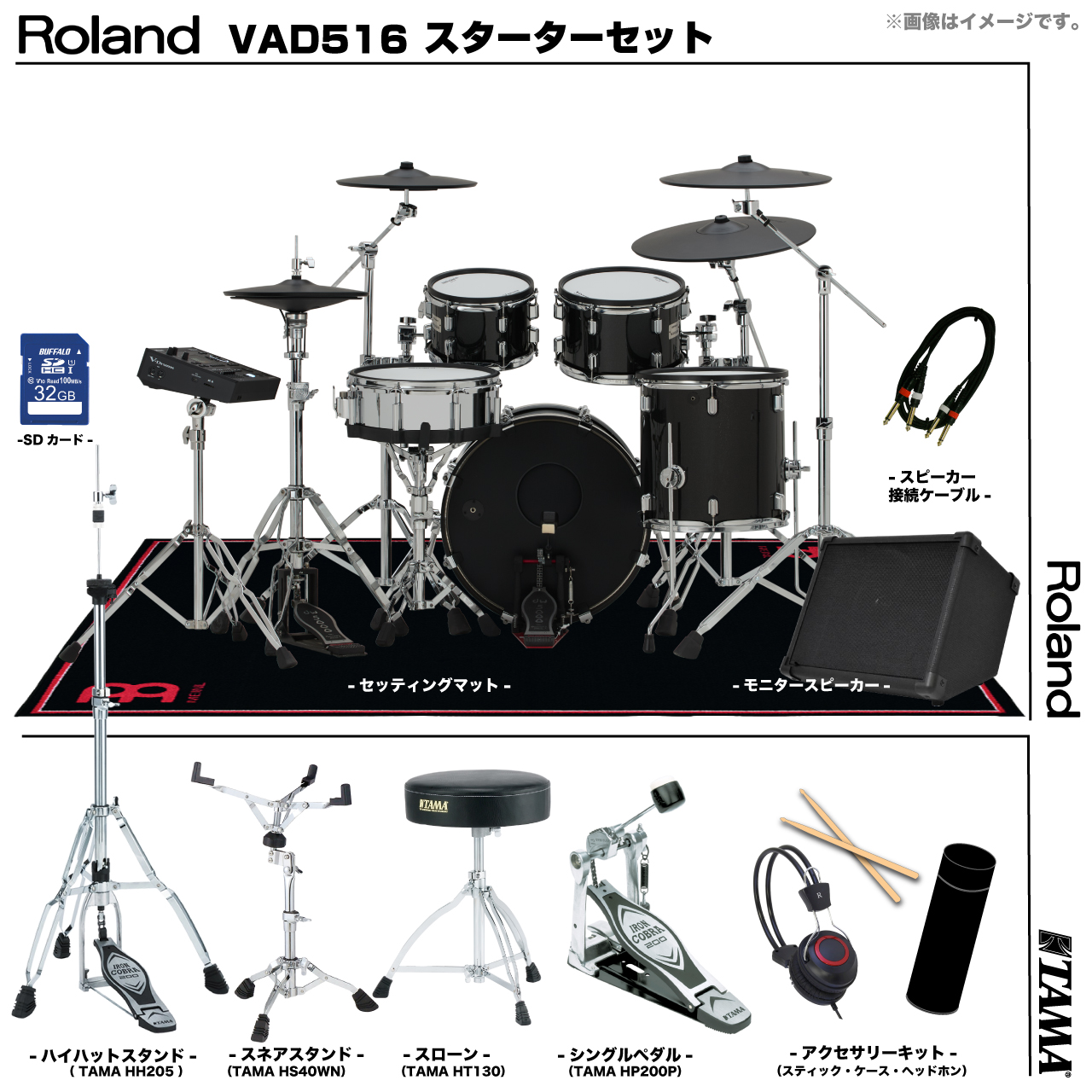Roland ローランド 即納可能 VAD516 TAMA シングルペダル アンプ付き セット電子ドラム エレドラ
