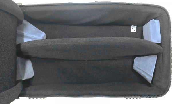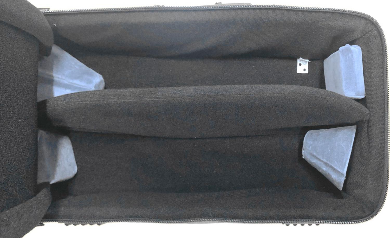 ▼移動できるクッション 内部にはクッションが入っています。クッションは自由に位置を調整できるのも魅力。 ダブルケースなので、2種類のパーツがそれぞれ2個づつ付いています。 円錐型のような形と長方形のような形で、マジックテープが付いています。 円錐型はベルに入れてマジックテープとケースを固定できますので、ケースの中で無駄に動くのを防いでくれます。 長方形の方はマウスパープなどの下など、隙間ができる部分に入れて調整します。 ここに関してはエリートシリーズも同様です。 ちなみに、真ん中の仕切りもマジックテープで取ることができます。B♭トランペットだけでなく工夫次第で様々なトランペットや場合によってはコルネットなども収納可能かもしれません。