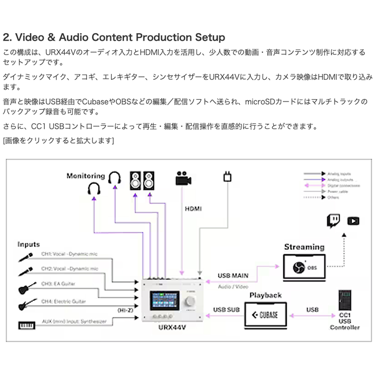 URX44V B オーディオインターフェイス 配信 HDMI ビデオインターフェイス DAW DTM ブラックURX44Vのプロレベルの音質、柔軟な入出力、そして多用途で使いやすい機能が、あなたの作品を思い描いた通りの美しさとクオリティで届けます。その瞬間を捉える