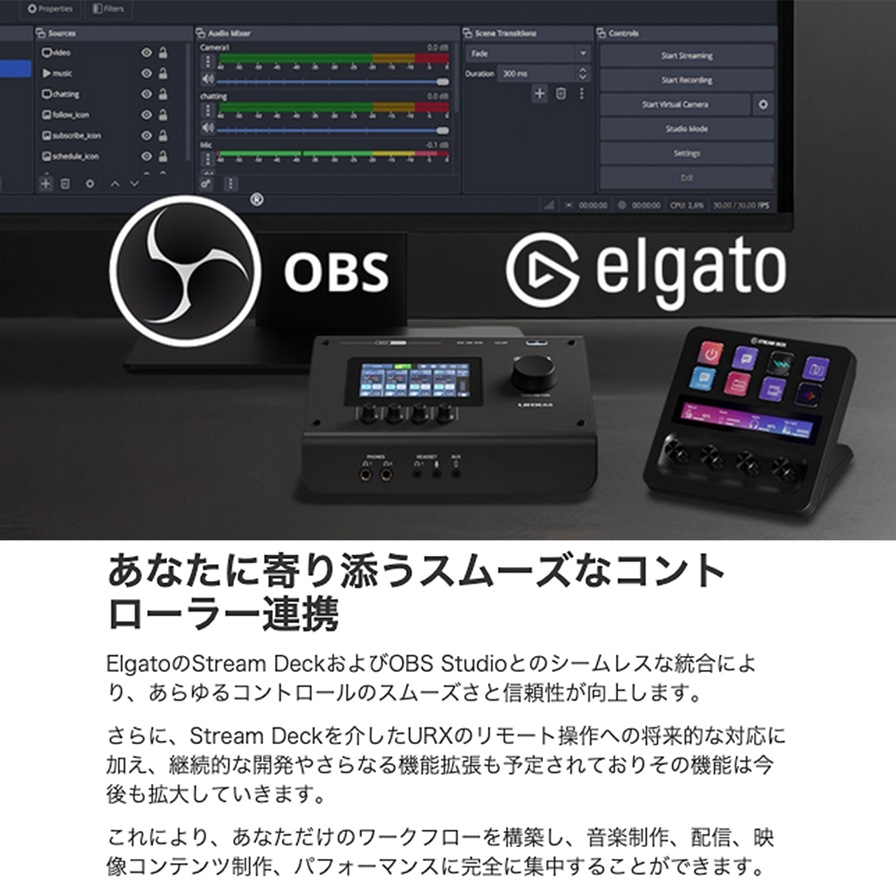 拡大し続けるエコシステムと幅広い互換性を持つコントローラーとの連携により、URXはあなたのクリエイティブ・ジャーニーをさらに力強く支えるパートナーとなります。 創作をトータルにサポートするソフトとハード