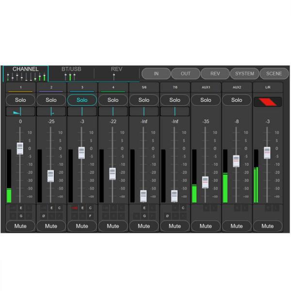 DIGIPAD 8は、多用途性と使いやすさの完璧なバランスを実現し、7本の電動フェーダーにより素早く正確なコントロールが可能です。ミキサーの設定「シーン」を保存し、瞬時に呼び出すことができます。如何なる環境でも操作をスピードアップします。本機は他の機器を依存せず、単独の運用を想定した設計となり、タッチスクリーンから全機能の操作のみならず、専用のAndroid/iOSアプリを介してスマートフォンやタブレットからの完全なリモートコントロールも可能です。MIC/LINEのコンボ入力とステレオ入力を搭載し、マイク、楽器、外部音声に幅広く対応します。