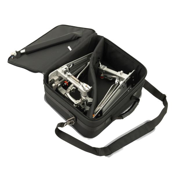 スネアドラムとドラムペダルを同時に運ぶことのできるキャリングカート付のケース。キャリングカートからそれぞれのバッグの着脱が可能でケース単体としても使用できる。スネアドラム(14"×5"~6.5")ツインペダル対応。