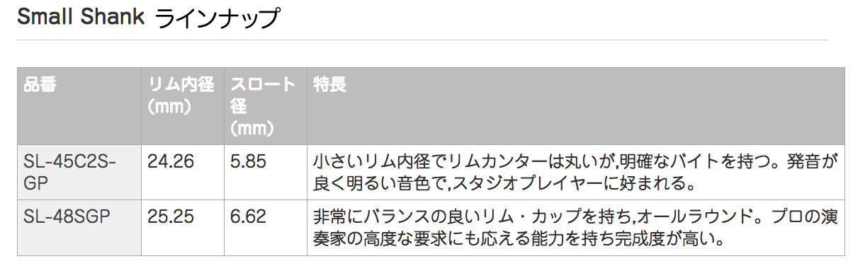 非常にバランスの良いリム・カップを持ち,オールラウンド。プロの演奏家の高度な要求にも応える能力を持ち完成度が高い。吹奏楽/オーケストラに。 |