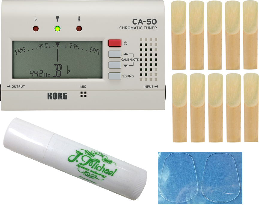 KORG コルグ CA-50 クロマチックチューナー アルトサックス リード 10枚 マウスピースパッチ コルクグリス 管楽器 チューナー セット A 北海道 沖縄 離島不可